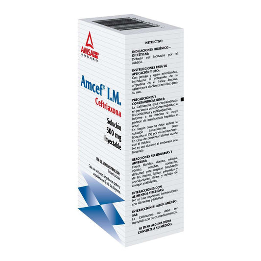 Amcef IM Ceftriaxona 500 Mg Solución Frasco Ámpula 2 Ml Genérico Amsa