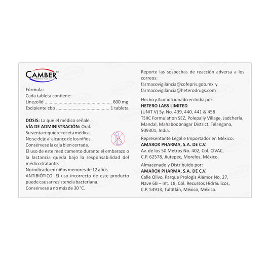 Linezolid Camber 600 mg Caja Con 10 Tabletas Genérico