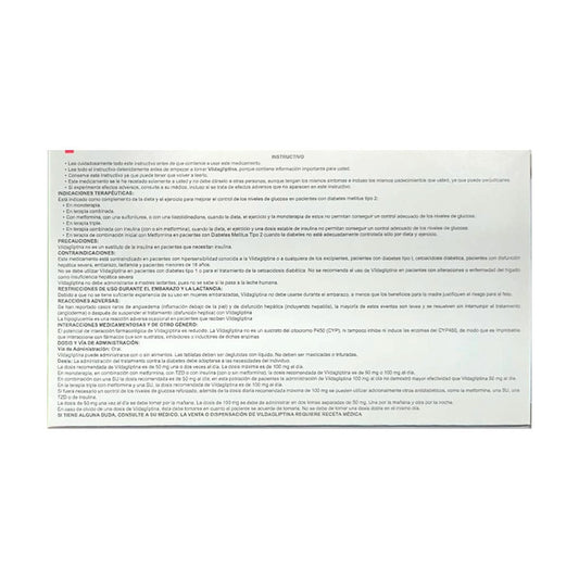 Vildagliptina 50 mg Caja Con 28 Comprimidos Genérico