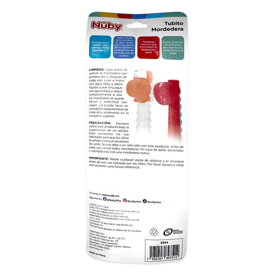 Tubito Mordedera Nuby 100% Silicón Dinosaurio o Llama Multi-Textura 1 Pieza