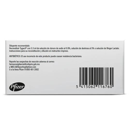 Tygacil Pfizer Tigeciclina Solución Inyectable 50 mg Caja Con 10 Viales