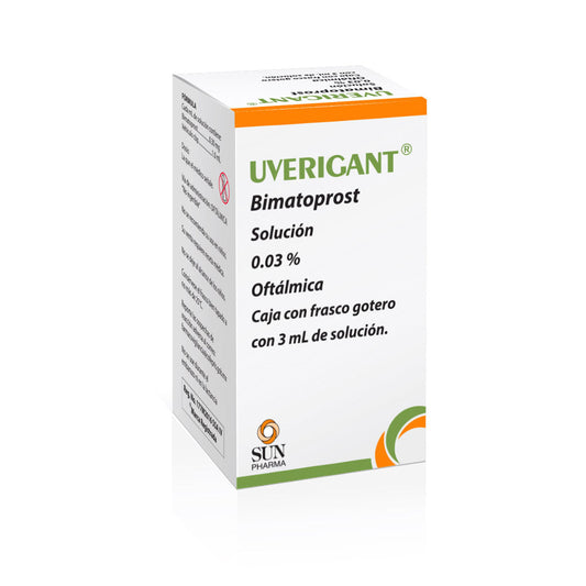 Uverigant Sun Pharma Bimatoprost 0.03% Solución Oftálmica Caja Con Frasco Gotero Con 3 ml