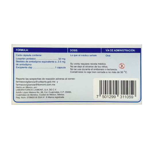 Losartán/Amlodipino 50 Mg/25 Mg Lodestar Duo Liomont Caja Con 30 Cápsulas Genérico