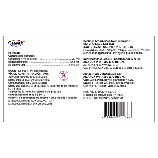 Olmesartán / Hidroclorotiazida 20/12.5 Mg 28 Tabletas