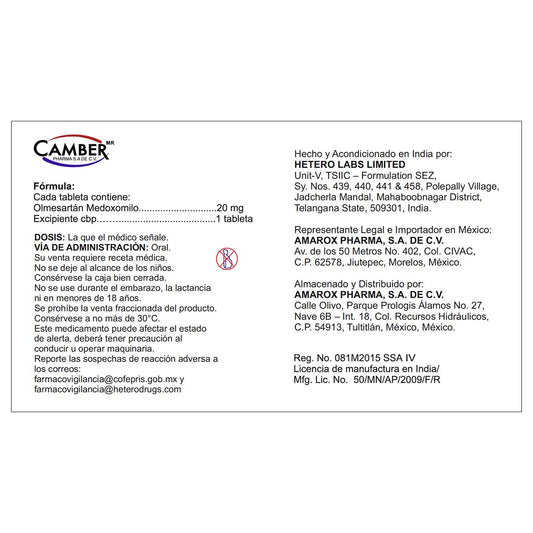 Olmesartan Medoxomilo 20 Mg 28 Tabletas