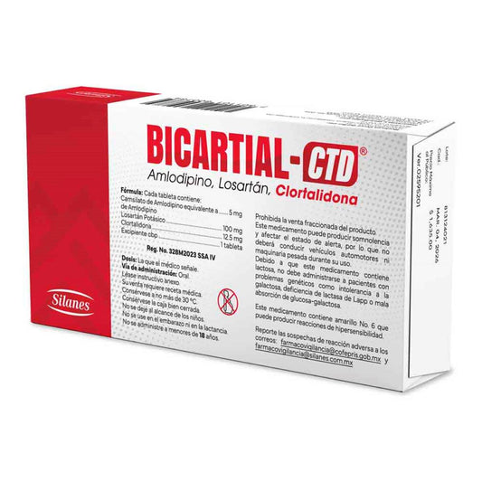 Bicartial-CTD Silanes Amlodipino/Losartán/Clortalidona 5 mg/100 mg/12.5 mg Caja Con 30 Tabletas