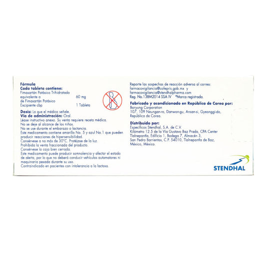 Di-Arahkor Stendhal Fimasartán/Hidroclorotiazida 60/12.5 mg Caja Con 30 Tabletas