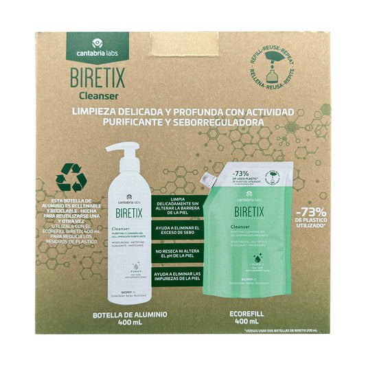 Kit Biretix Cleanser Botella De Aluminio 400 ml + Refill 400 ml