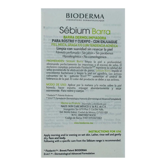 Barra Dermolimpiadora Bioderma Sébium Pain 100 G