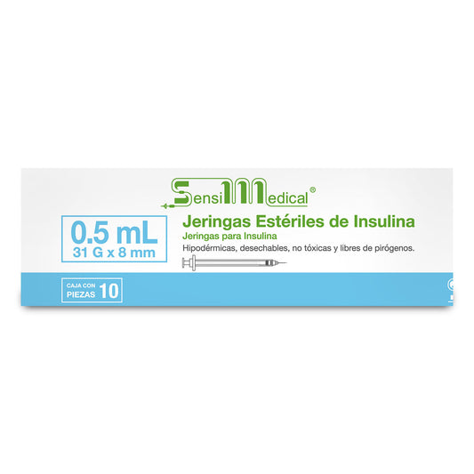 SensiMedical Jeringas De Plástico Para Insulina De 0.5 Ml Con Aguja 31 g X 8 mm 40 Cajas Con 10 Piezas