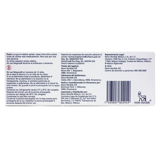 Wegovy Semaglutida Dosis 0.5 mgn/Pluma Precargada 1.34 mg Solución Inyectable 4 Dosis