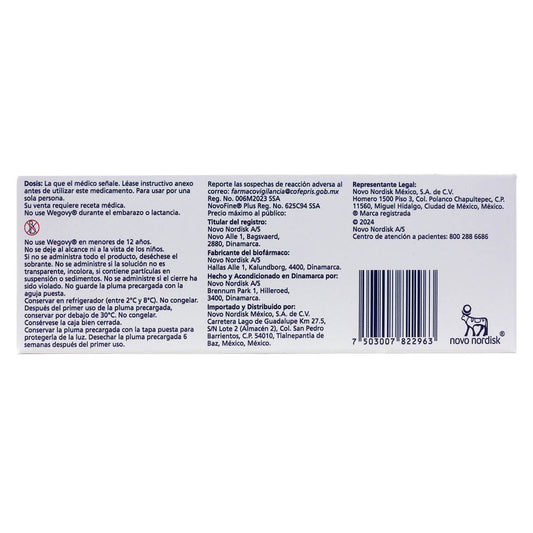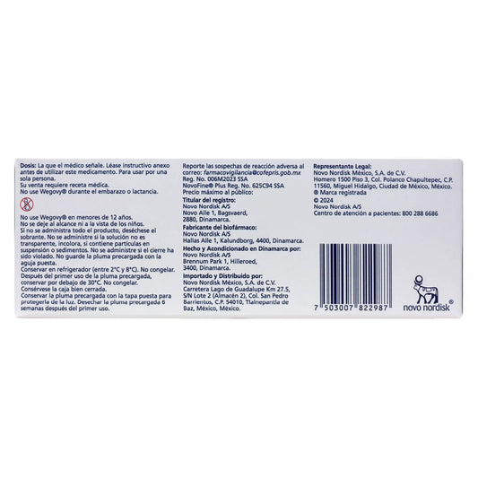 Wegovy Semaglutida Dosis 0.25 mgn/Pluma Precargada 0.68 mg Solución Inyectable 4 Dosis