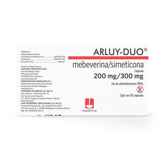 Arluy Duo Asofarma Mebeverina/Simeticona 200 mg/300 mg Caja Con 30 Cápsulas