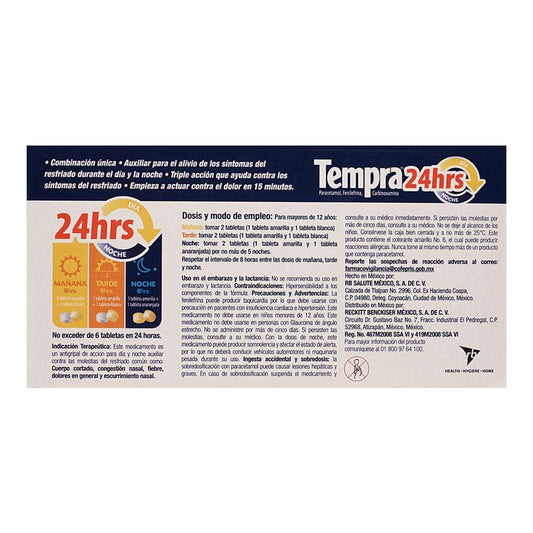 Tempra 24Hrs Gripa Y Resfriado 12 Tabletas