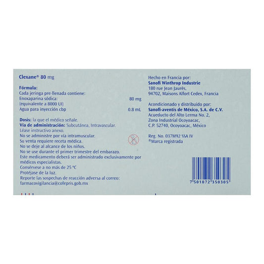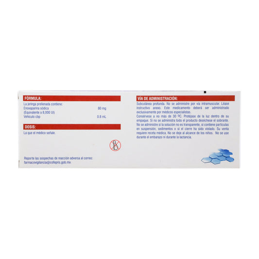 Clexane 80 Mg Solución Inyectable 2 Jeringas 0.8 Ml