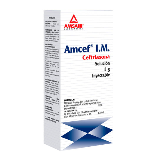Amcef Ceftriaxona IM 1 G Solución Inyectable Genérico Amsa