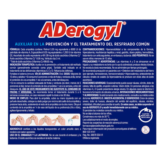 Aderogyl Vitaminas A, C Y D Fortalece El Sistema Inmune, 5 Ampolletas De 3 Ml
