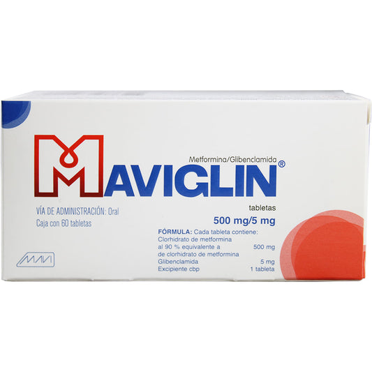 Maviglin Metformina/Glibenclamida 500/5 Mg 60 Tabletas Genérico Mavi