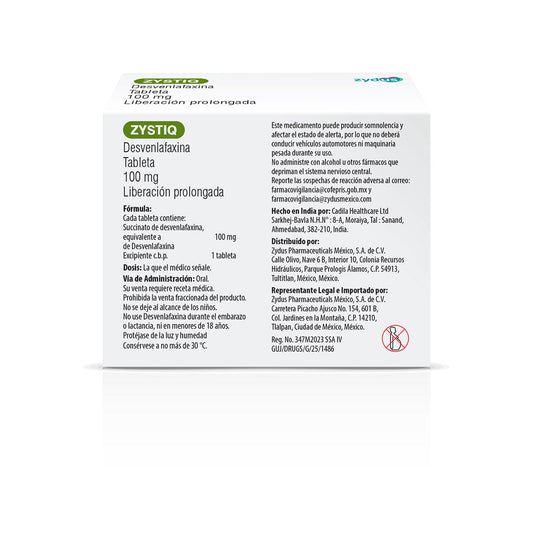 Zystiq Zydus Desvenlafaxina 100 mg Liberación Prolongada Caja Con 28 Tabletas
