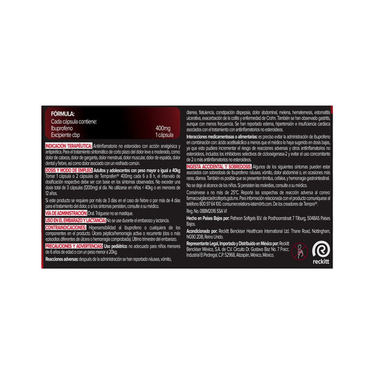 Tempra Fen ibuprofeno 400 MG caja con 20 Cápsulas