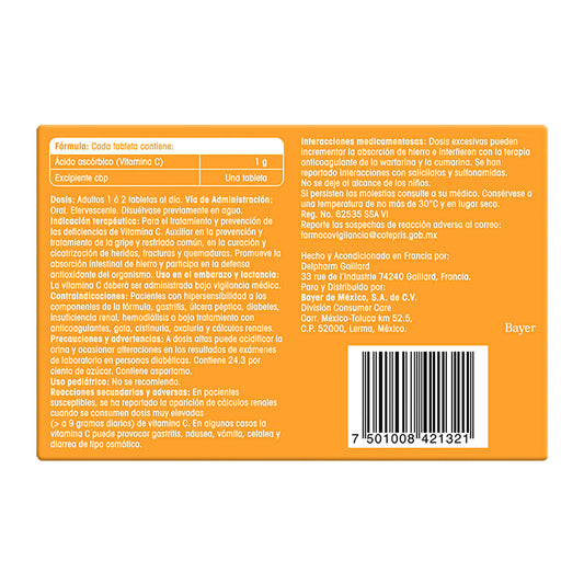 Bayer Redoxon 1g 2 Pack Sabor Naranja 2 Tubos con 10 Tabletas