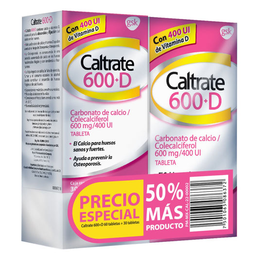 Caltrate 600+D 60 Tabletas + 30 Tabletas Gratis