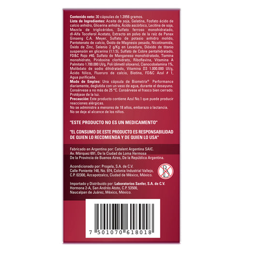 Biometrix Sanfer Performance Frasco Con 100 Cápsulas