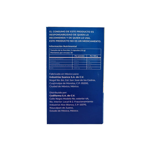 Carboxin Carbón Activado/Inulina De Agave/Alga Espirulina Frasco Con 60 Cápsulas